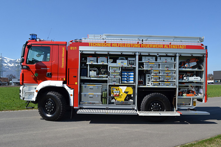 • Geräteräume mit Schwenkfächern und Schwenkwänden ausgestattet