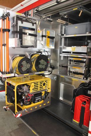 - Pumpensteuerung über WDS mit Anzeige von Tankfüllstand, Wasserförderung, Lichtmastbedienung sowie Motormanagement und Tastensystem mit zusätzlichen Manometer/Vakuummeter (redundant)