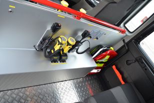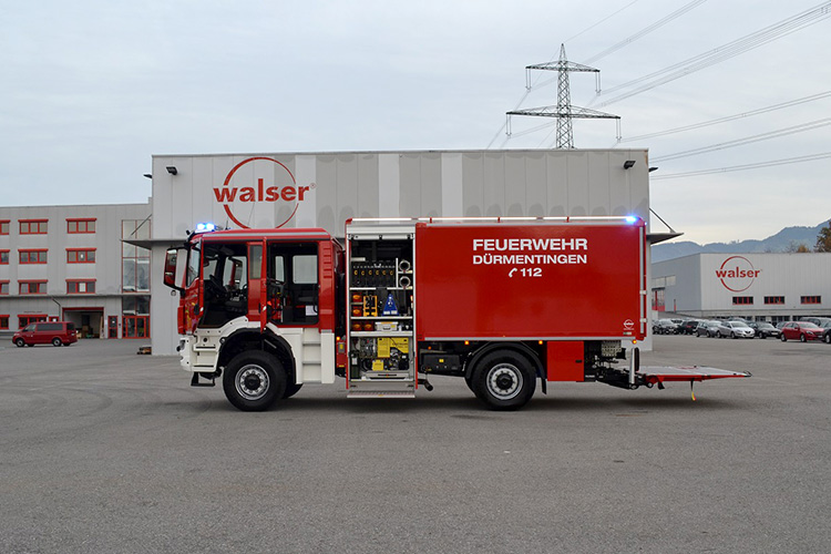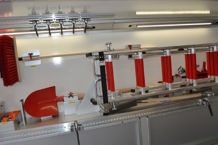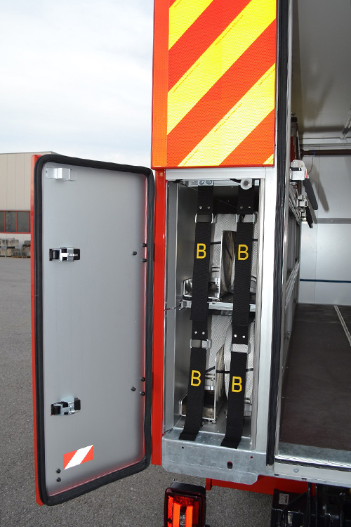 - Schlauchverlegeeinheit im Kofferaufbau, Seitenwand integriert