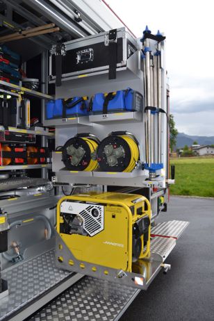 - Pumpensteuerung über WDS mit Anzeige von Tankfüllstand, Wasserförderung, Lichtmastanzeige sowie Motormanagement und Tastensystem mit zusätzlichen Manometer/Vakuummeter (redundant)