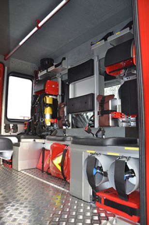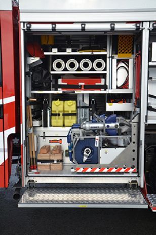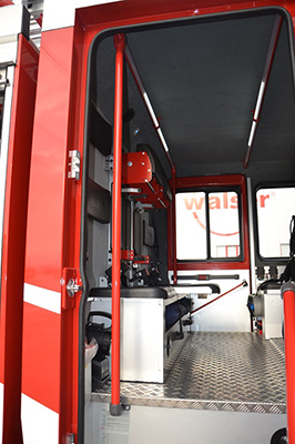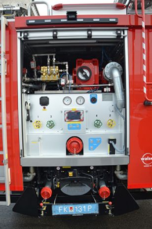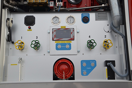 - Pumpensteuerung über WDS mit Anzeige von Tankfüllstand, Wasserförderung, Lichtmastbedienung sowie Motormanagement) und Tastensystem mit zusätzlichen Manometer/Vakuummeter (redundant)