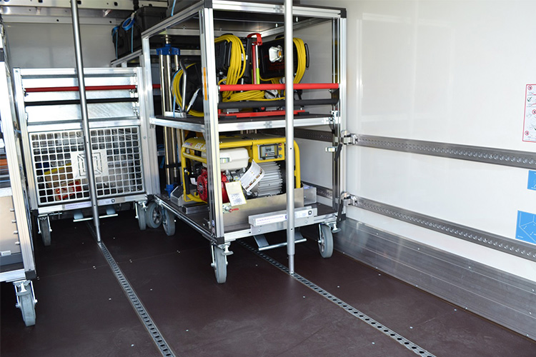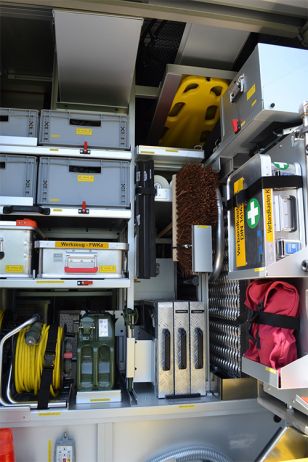 - Geräteräume mit Schwenkfächern und Schwenkwänden ausgestattet