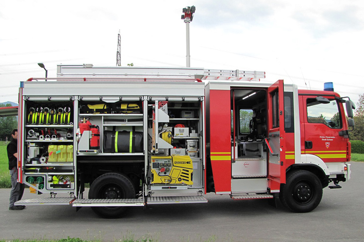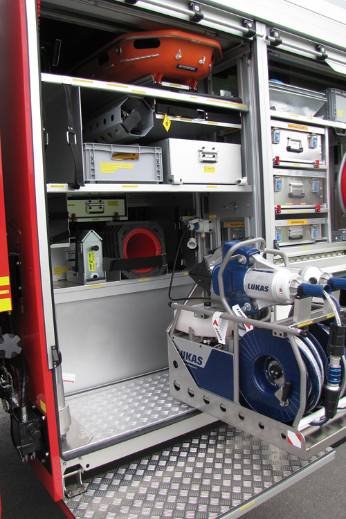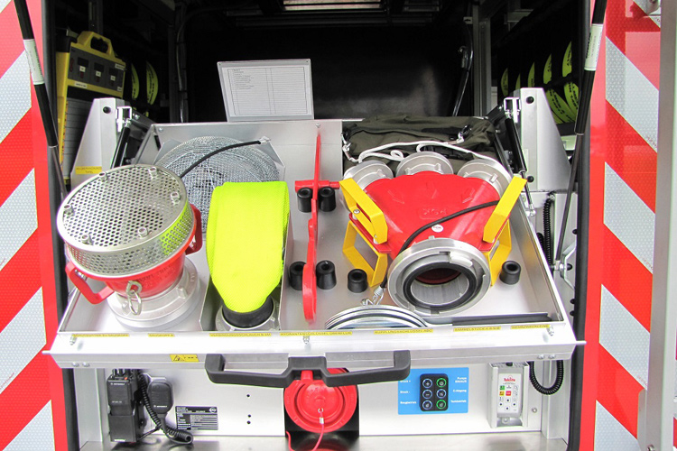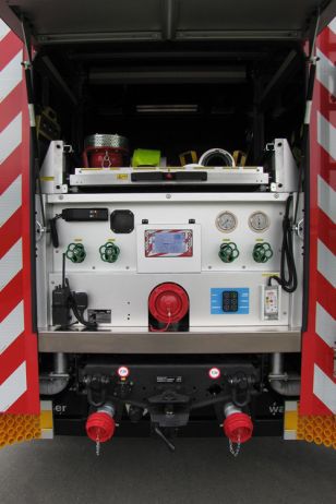 - Pumpensteuerung über WDS mit Anzeige von Tankfüllstand, Wasserförderung, Lichtmastbedienung sowie Motormanagement) und Tastensystem mit zusätzlichen Manometer/Vakuummeter (redundant)