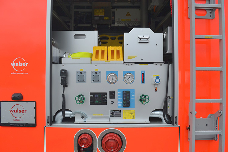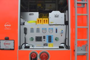 • Pumpensteuerung über WDS mit Anzeige von Tankfüllstand, Wasserförderung, Lichtmastbedienung sowie Motormanagement) und Tastensystem mit zusätzlichen Manometer/Vakuummeter (redundant)
