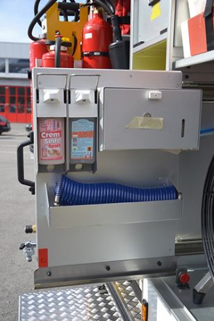- Lichtmastbedienung sowie Motormanagement) und Tastensystem mit zusätzlichen Manometer/Vakuummeter (redundant) sowie integrierter Steuerung für Schaumzumischsystem Fire Dos 1600