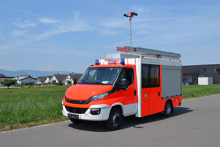 Lichtmast pneumatisch mit 4 x LED Strahler dreh- und schwenkbar sowie Blaulicht