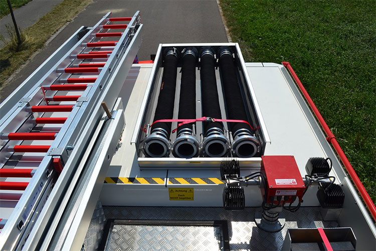 Lagerung Saugleitungen sowie Steckleiter auf dem Aufbaudach