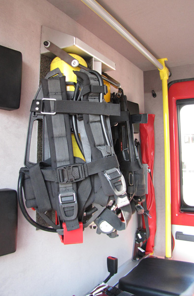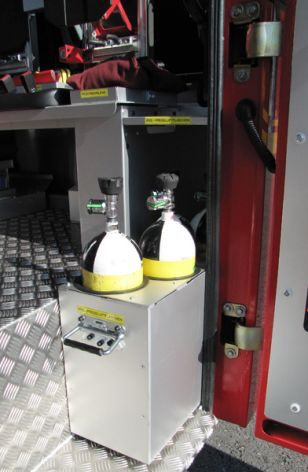 • Ersatzflaschen für PA verlastet in Alucontainer im Mannschaftsraum