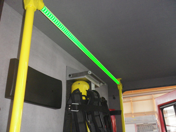 • Beleuchtung im Mannschaftsraum und Aufbau LED weiß und grün