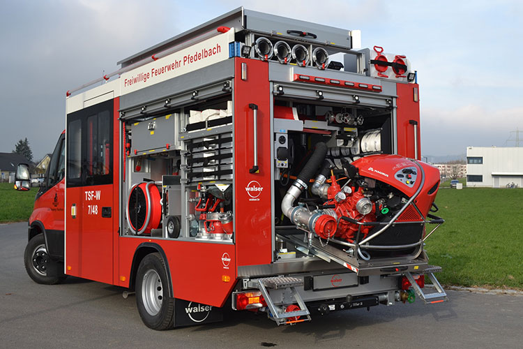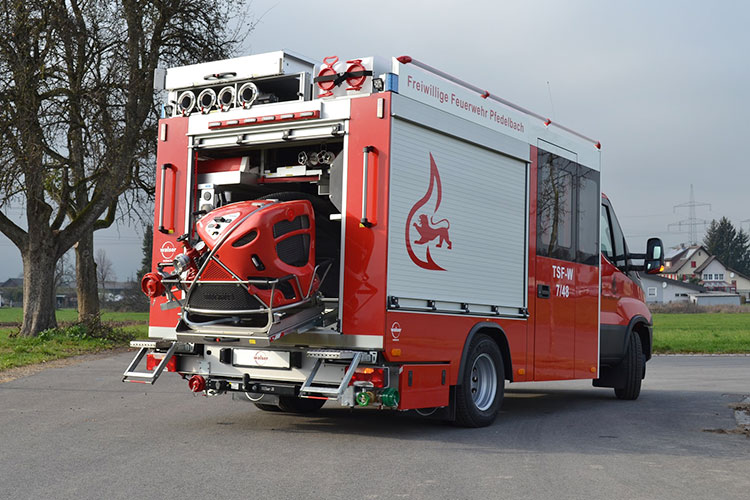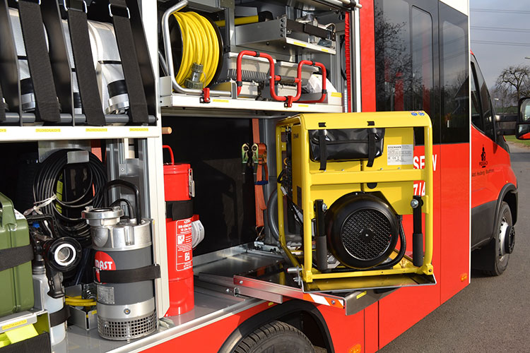 - Unter G2 Staufach für SchnellangriffsverteilerLagerung Saugleitungen auf dem Aufbaudach