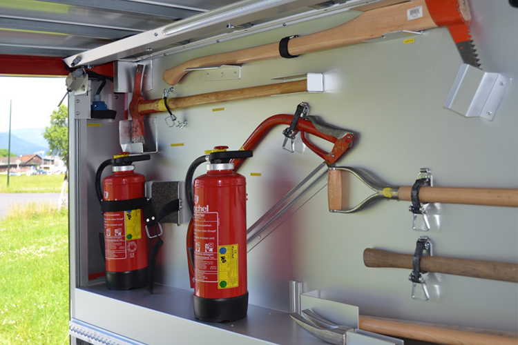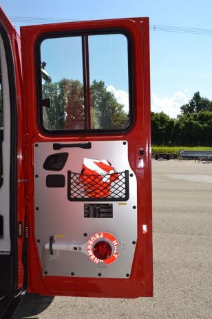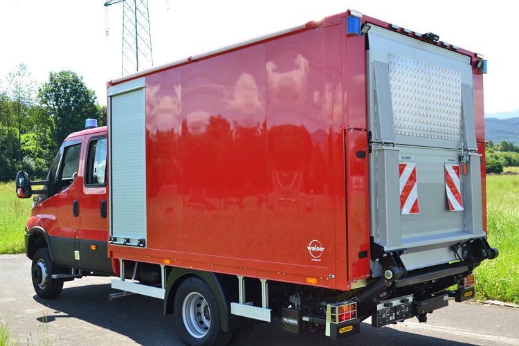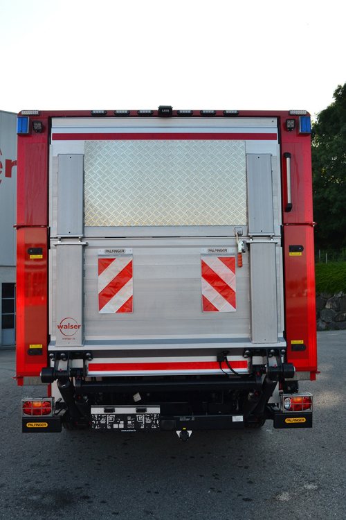 - Schlauchverlegeeinheit links und rechts am Fahrzeugheck