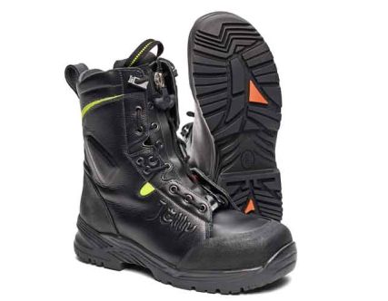 Sicherheits-Schnürstiefel "Fire Guard SUPERLEICHT" EN 15090:2008 HI3 CI AN F2A absolut wasserdicht durch GORE-CROSSTECH Membrane, 2,0-2,2 mm dickes Oberleder, TPU-Überkappe gegen starke Beanspruchung, Laufsohle aus antistatischem Nitrilgummi, unempfindlich gegen Benzin, Hitze-, Rutsch- und verschließfest, Aluminiumkappe mit Druckfestigkeit bis 200 Joule, Knöchelschutz, seitlicher Stichschutz aus Kevlar, Reißverschluß für bequemes Einsteigen in den Stiefel, Höhe 24 cm.