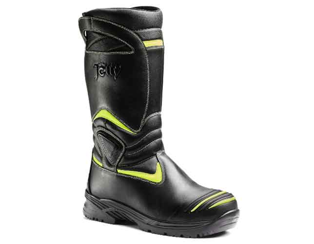 Sicherheits-Stiefel "Fire Profi 2.0" nach EN 15090:2012 (9305GA) HI3 CI AN SRC absolut wasserdicht durch GORETEX Membrane, 2,4-2,6 mm dickes Oberleder, Gummiüberkappe sturkturiert für längere Haltbarkeit, Laufsohle aus antistatischem Nitrilgummi, unempfindlich gegen Benzin, hitze-, rutsch- und verschließfest, Aluminiumkappe mit Druckfestigkeit bis 200 Joule, Knöchelschutz, seitlicher Stichschutz durch Kevlar, Gummiband im Rist für optimalen Halt am Fuß, Lederlaschen als Anziehhilfe sowie Elastikband im Schaftbereich.