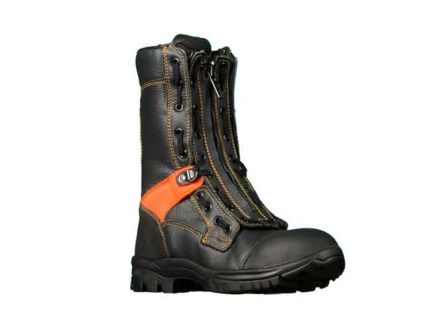 Jugendfeuerwehr-Schnürstiefel 7Angel Youngster EN 20345:2012 S3 - aus schwarzem Oberleder, Gummi-Überkappe enorm abriebfest, verstärkter Fersenbereich, Ristarretierung sowie einer Anziehschlaufe. Seitlich ist ein reflexstreifen leuchtrot angebracht, YKK Markenreißverschluss mit Schutzabdeckung. Das Innenfutter ist atmungsaktiv und schnell rücktrocknend.