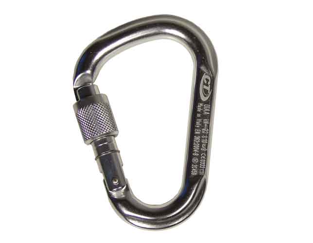 Birnenförmiger Aluminiumkarabiner mit klassischem Schraubverschluss.