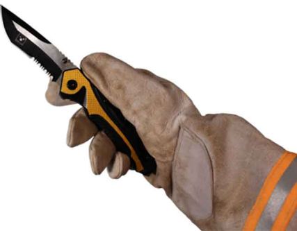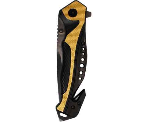 Das SNAP Rettungsmesser lässt sich spielend mit einer Hand öffnen: ein leichtes Drücken mit Daumen oder Zeigefinger lässt die Klinge federunterstützt aufschnellen und selbsttätig arretieren. Die 9 cm lange, rostfreie Stahlklinge verfügt über einen 3 cm begrenzten, extrem scharfen Serrations-Wellenschliff. Am Ende des Messergriffs befindet sich ein Glaszertrümmerer sowie ein im Griff integrierter Gurtschneider mit Doppelklinge.