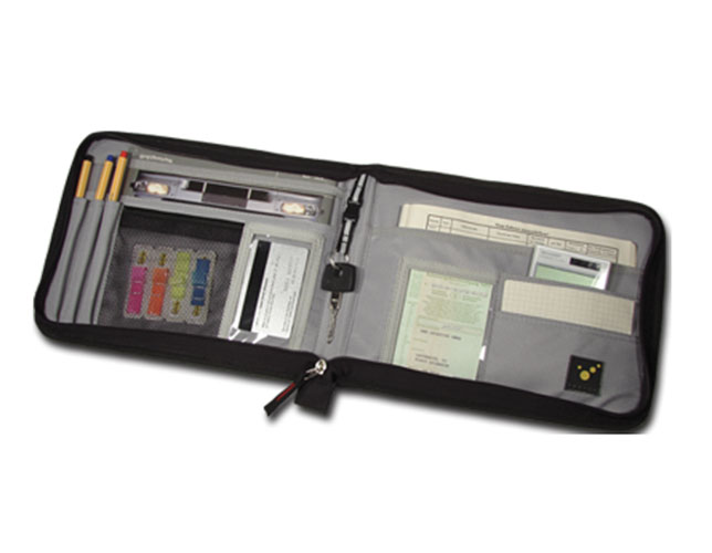 Fahrtenbuch-Mappe im DIN A5 Querformat mit einer Vielzahl an Fächern für die ordentliche Aufbewahrung aller Unterlagen. Drei Klarsichtfächer z.B. für Wartungsheft, Zulassungsbescheinigung und Tankkarte. Ein Netzfach mit sicherem Klettverschluss für Kleinteile. Fach für das Fahrtenbuch sowie ein weiteres Doppelfach für Notizblock oder ähnliches. Drei Stifthalter sowie zwei abnehmbare Schlüsselhalter komplettieren die Ausstattung. Der TOUR Organizer wird mit einem Reißverschluss sicher geschlossen.