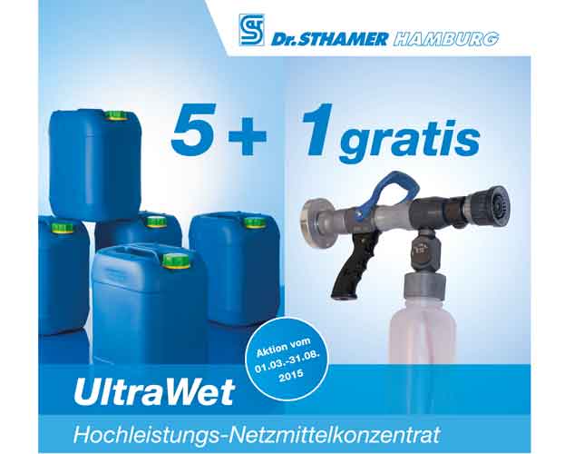 Sthamex UltraWet ist ein nicht schäumender Löschwasserzusatz zur Steigerung der Netzfähigkeit des Löschwassers gegenüber Feststoffe wie z.B. Papier, Späne, Stroh, Baumwolle, Kohlenstaub, frostbeständig bis -25°C. Bereits bei einer Zumischrate von 0,1 % dringt das Löschwasser sehr viel schneller und nachhaltiger in das Brandgut ein, verkürzt die Löschzeit und verringert Folgeschäden. STHAMEX-UltraWet wird mit handeslüblichen Zumischsystemen dem Löschwasser zugesetzt und über STrahl- oder Hohlstrahlrohre ausgebracht. Auch für Kübelspritzen und Brandbekämpfung aus der Luft geeignet.