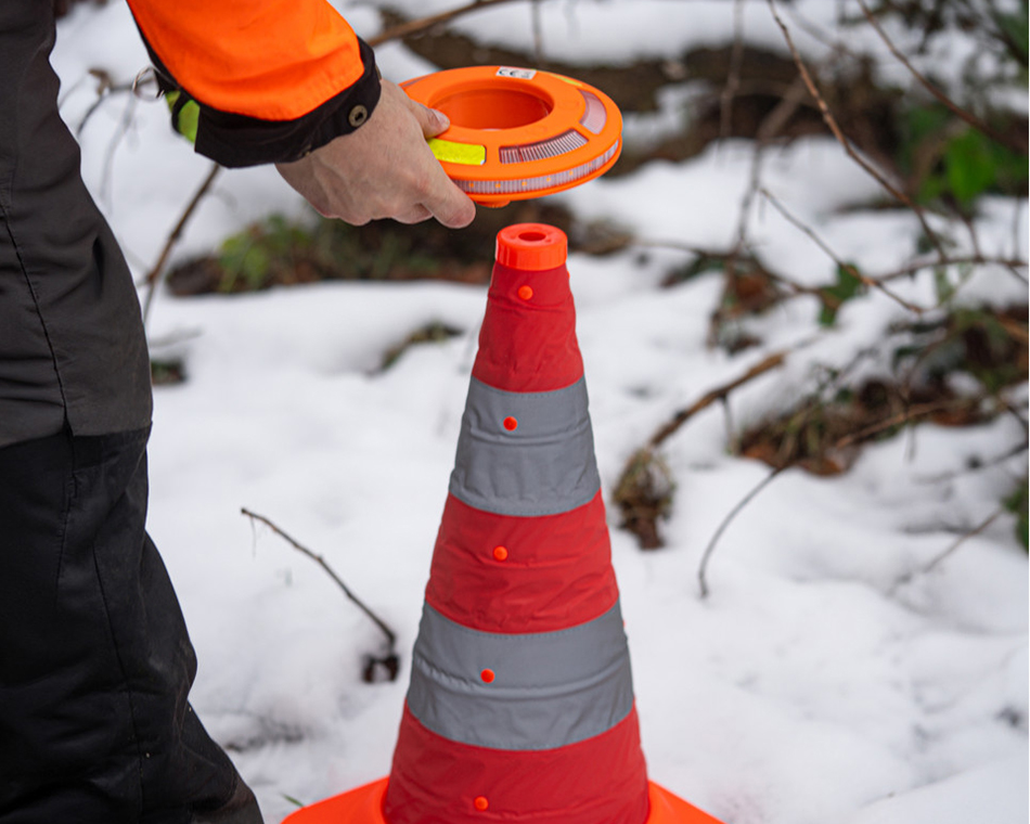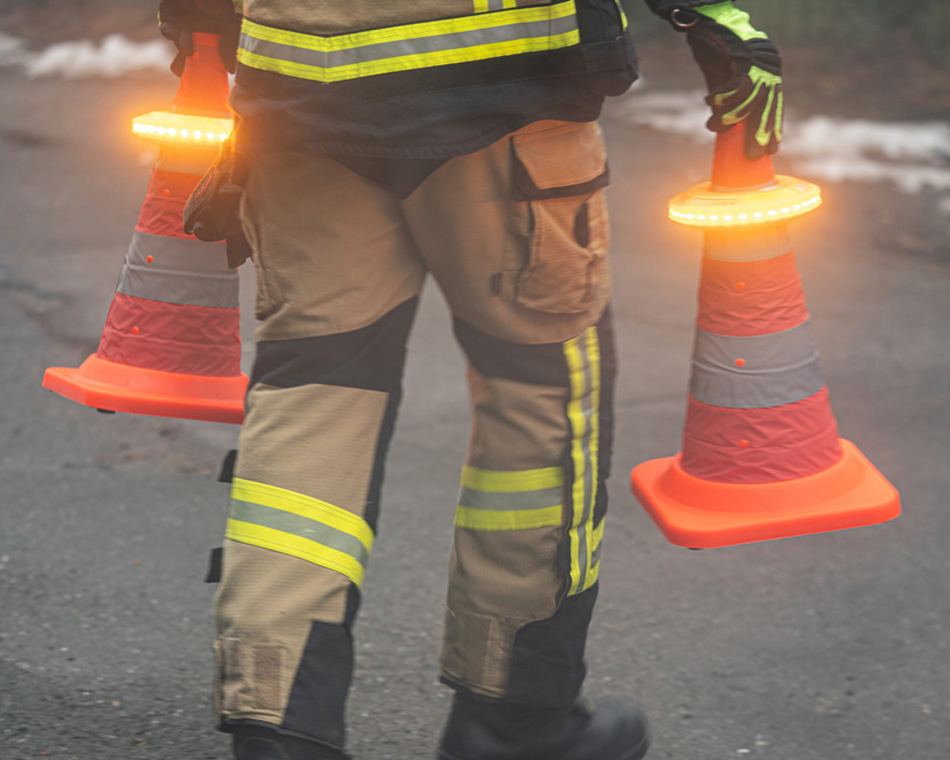 Mit stoßunempfindlicher und wasserdichter Bauweise sind die Leuchten für den robusten Einsatz im Außenbereich bestens geeignet. Eine automatische Aktivierung und Synchronisierung erfolgt direkt beim Entnehmen aus dem Koffer - das spart Zeit und sorgt für sofortige Einsatzbereitschaft.