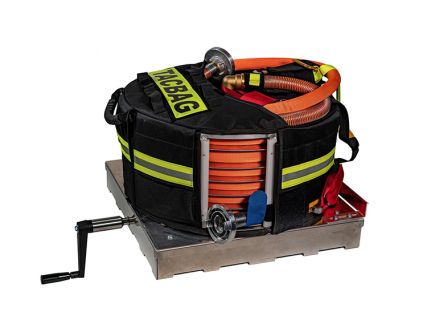 Zum sicheren Transport der TACBAG haben wir eine Fahrzeughalterung mit integriertem Aufrollsystem entwickelt. Die TACBAG kann als Einrichtung zur schnellen Wasserabgabe im Fahrzeug verbleiben und die benötigte Schlauchleitung abgezogen werden.